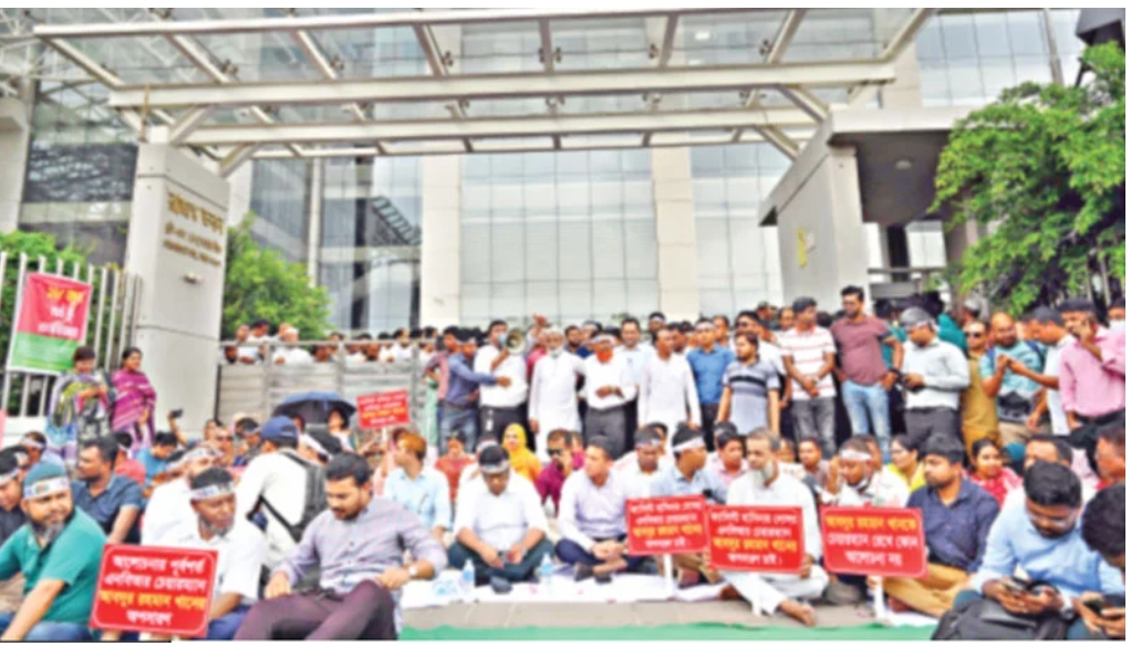এনবিআর ভবনের তিনটি ফটকই বন্ধ রাখা হয়। আন্দোলনকারীরা ভেতরে ঢুকতে পারেননি। ভবনের সামনে নানা স্লোগান লেখা প্ল্যাকার্ড হাতে বিক্ষোভ করেন।
