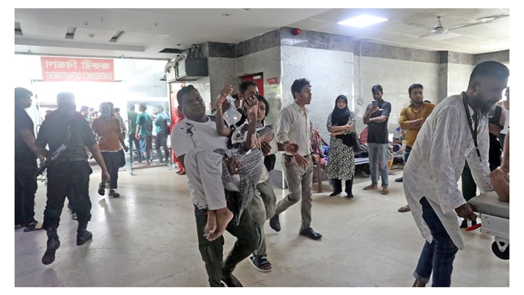 সোমবার দুপুরের দুর্ঘটনায় দগ্ধ শিশু শিক্ষার্থীদের বেলা ৩টার দিক থেকেই অ্যাম্বুলেন্সে একে একে আনা হয় ঢাকা মেডিকেল কলেজসংলগ্ন জাতীয় বার্ন ও প্লাস্টিক সার্জারি ইনস্টিটিউটে। ঘণ্টাখানেকের মধ্যে সেখানে যান উপদেষ্টা ড. আসিফ নজরুল, মুহাম্মদ ফাওজুল কবির খান, আদিলুর রহমান খান, সৈয়দা রিজওয়ানা হাসান, মোস্তফা সরয়ার ফারুকী ও মাহফুজ আলম।