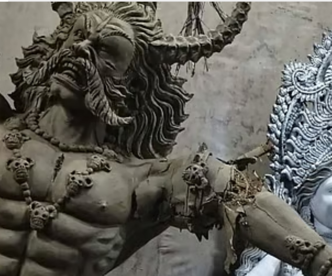 কাশিমপুর শ্মশান মন্দিরে আংশিক প্রস্তুত ছয়টি প্রতিমা ভাঙচুর করেছে দুর্বৃত্তরা। গতকাল বুধবারছবি : প্রথম আলো