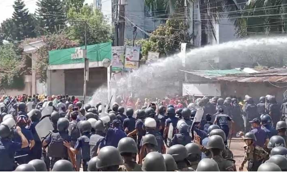 শিল্প পুলিশ-১-এর পুলিশ সুপার মোমিনুল ইসলাম ভুঁইয়া বলেন, ‘শ্রমিকরা বকেয়া বেতনের দাবিতে সড়ক অবরোধ করলে যান চলাচল সম্পূর্ণ বন্ধ হয়ে যায় এবং জনদুর্ভোগের সৃষ্টি হয়। প্রথমে আমরা তাঁদের বোঝানোর চেষ্টা করেছি, কিন্তু তাঁরা কর্ণপাত করেননি। পরিস্থিতি স্বাভাবিক করতে এবং যান চলাচল সচল রাখতে জলকামান ও লাঠিপেটা করে শ্রমিকদের ছত্রভঙ্গ করে দেওয়া হয়।