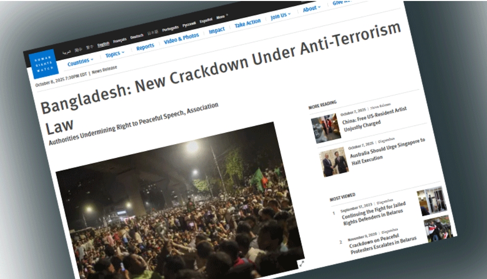 সন্ত্রাসবিরোধী আইনে বাংলাদেশে নতুন করে দমন-পীড়ন: হিউম্যান রাইটস ওয়াচ